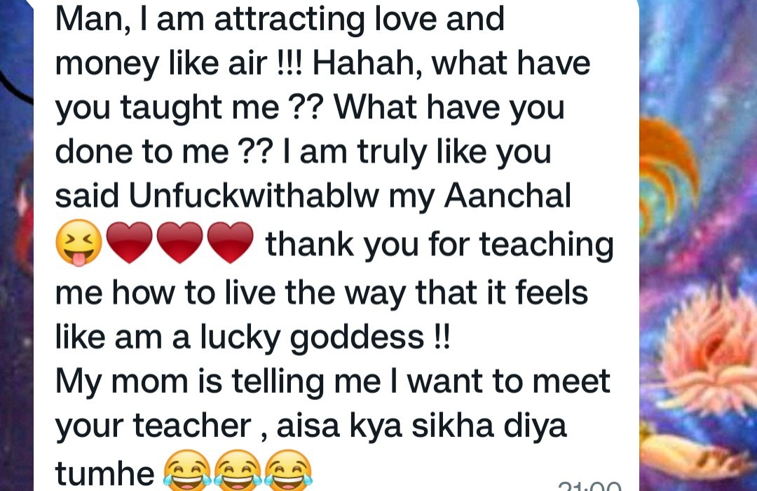~AND I AM HERE TO SHOW YOU EXACTLY THAT. I CAN TEACH YOU EXACTLY THAT, and then it's your responsibility to take action on it. Because knowing something and living it are two different things. I have been living a magical, effortless life since I moved from Bangalore to Sydney in 2022. I defied logic & quantum leapt into a magical life. But it would be unfair if I dint tell you that I did inner work to create an effortless outer reality and that's exactly what I teach you.